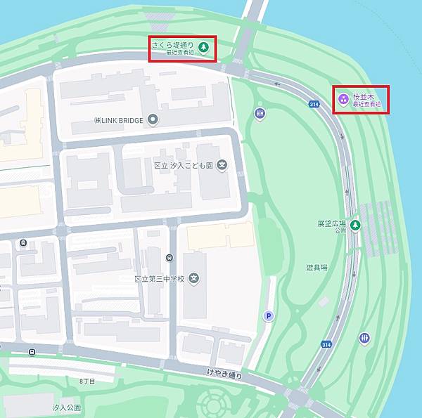 汐入公園是個反ㄈ字型,我們從左下方進來公園後,往右、往上走,慢慢逛到千住汐入大橋。