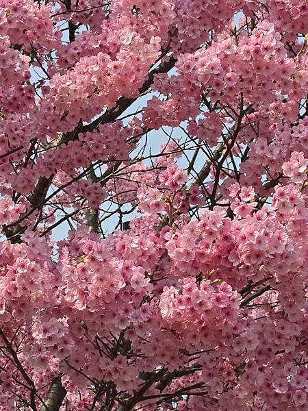 這裡的大寒櫻形成櫻花隧道,只不過有些已經長出綠葉了。