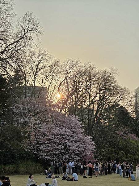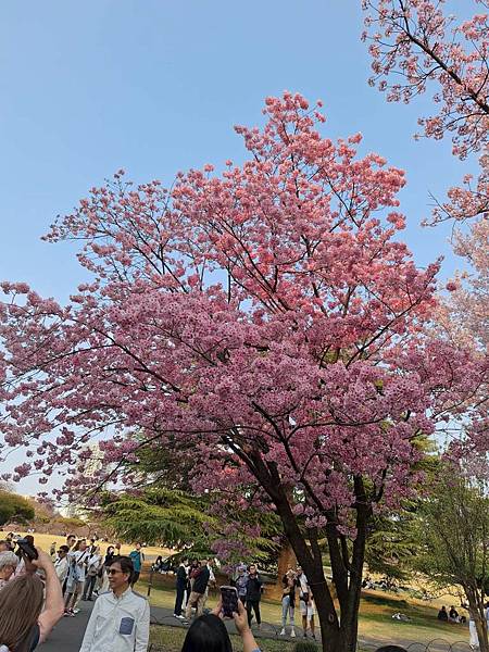 盛開的櫻花底下,依舊擠滿許多遊客佇足。
