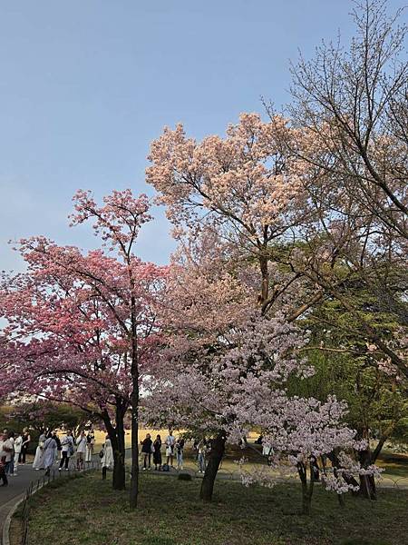 途經2株粉色櫻花,顏色深淺不一。