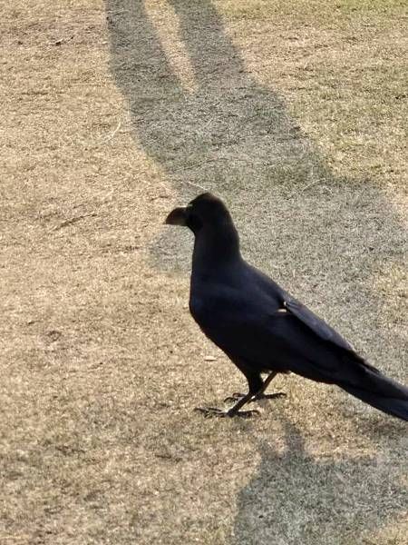 這裡的烏鴉完全不會怕生,在草地上恣意行走。