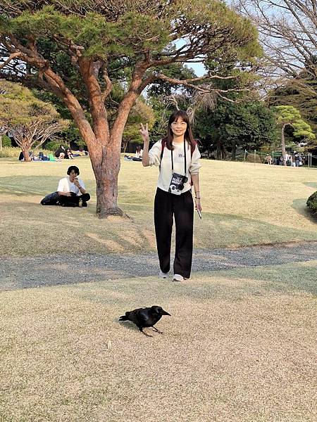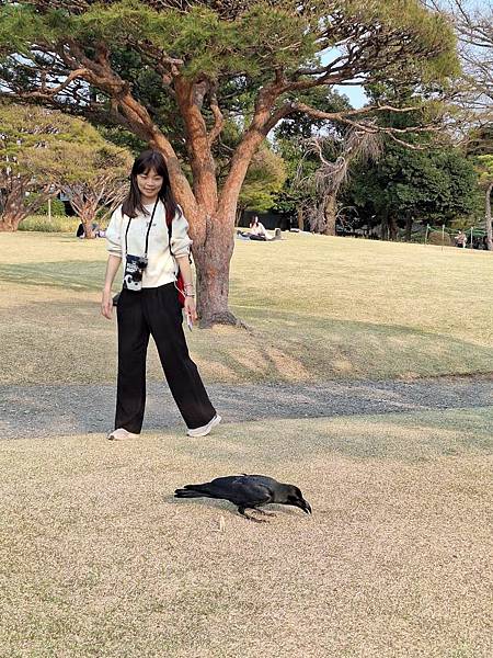 跟烏鴉合影。
