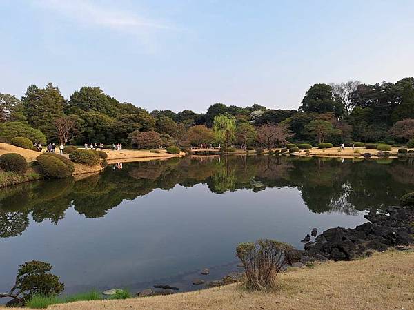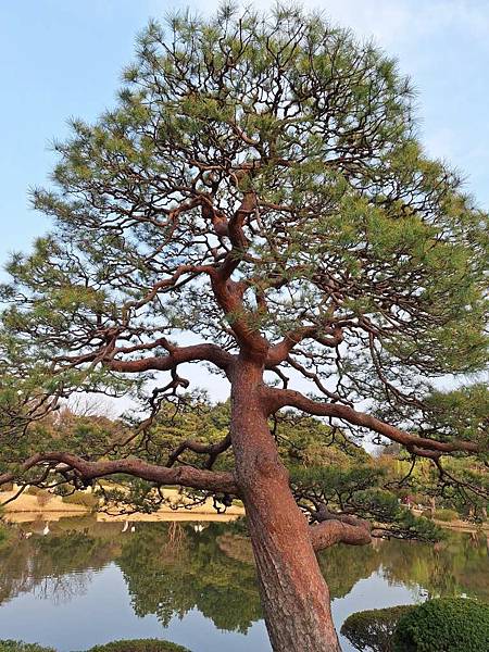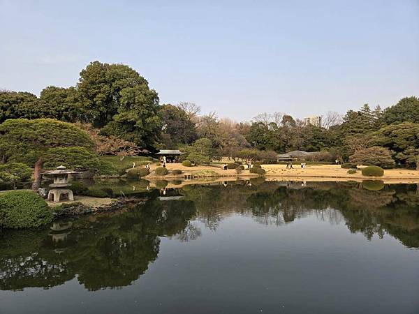 湖面映著庭園景色,美不勝收。