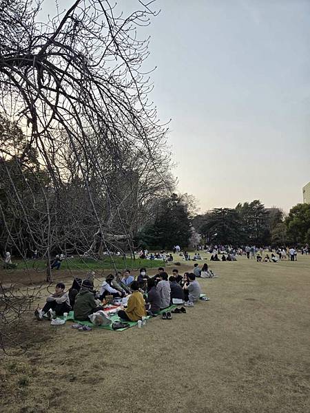 超多遊客在草地上席地而坐。