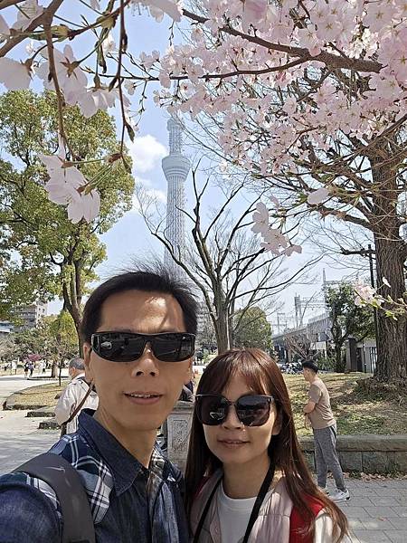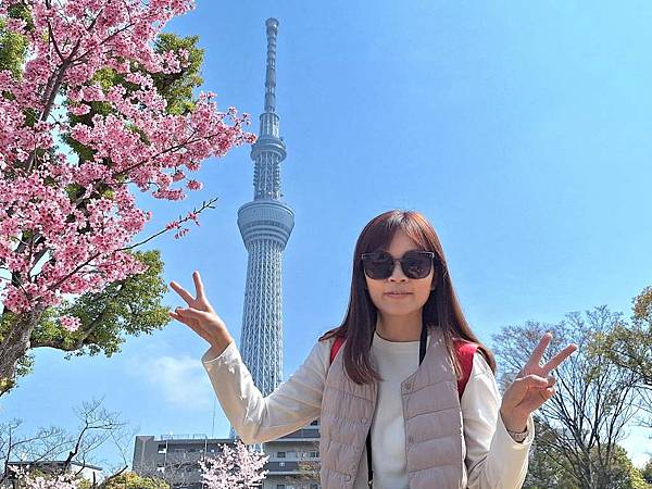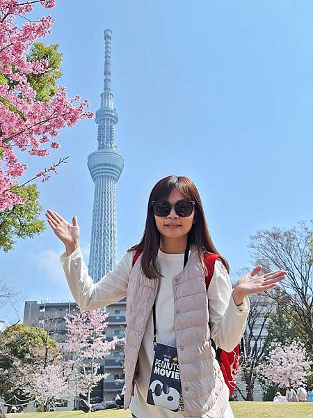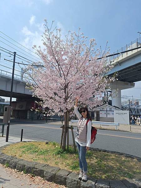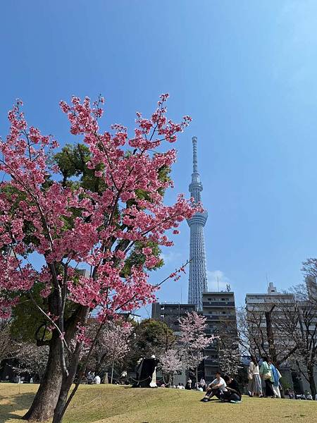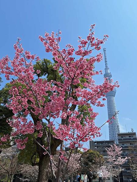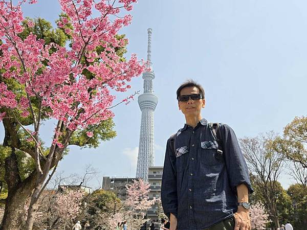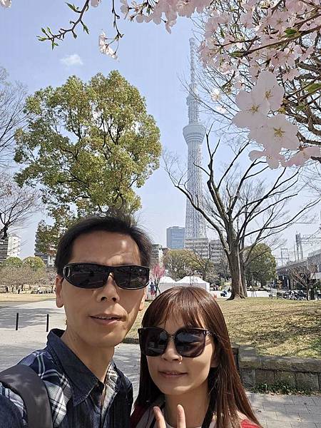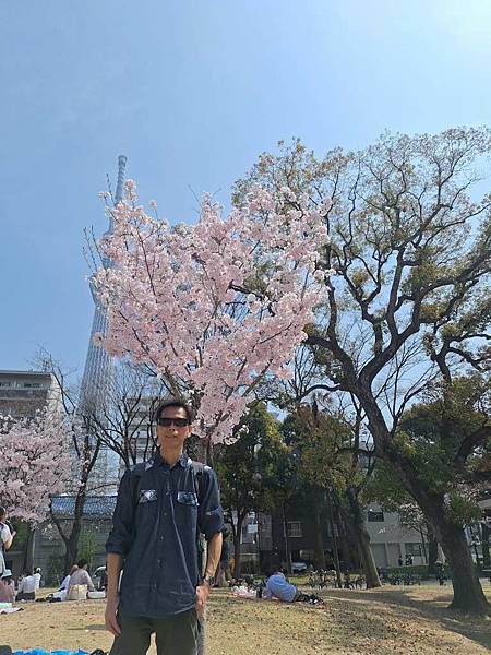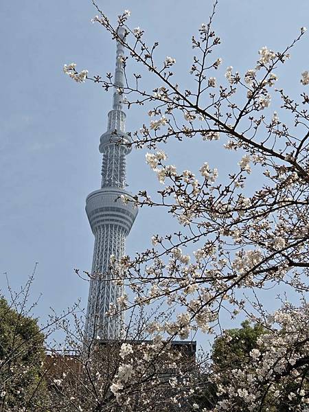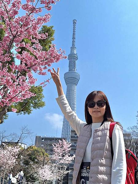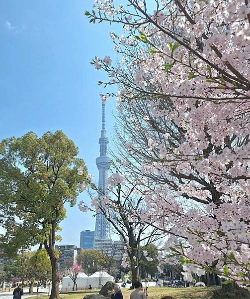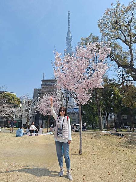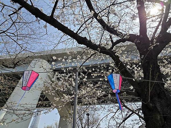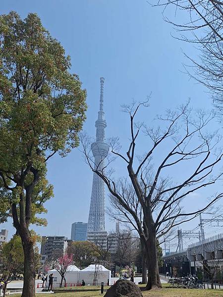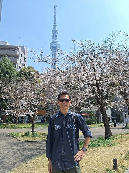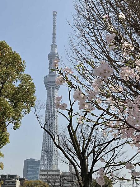 馬路對面就是隅田公園,路邊就有一株美麗的櫻花輝映著晴空塔。