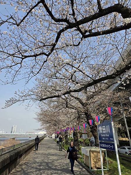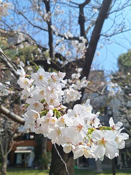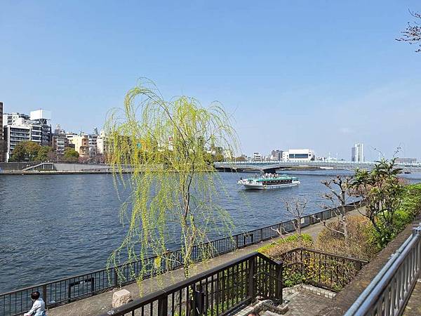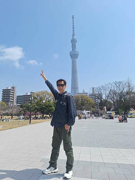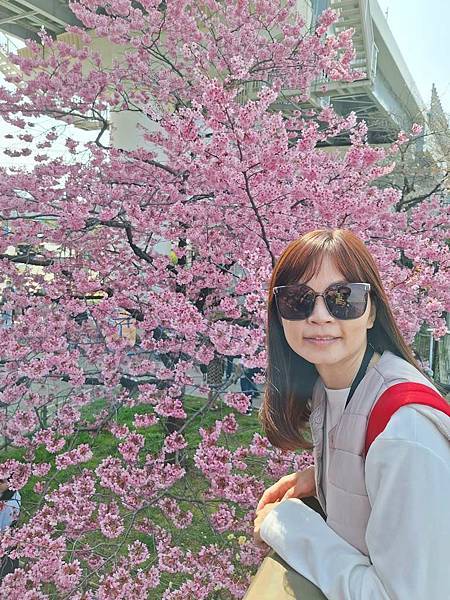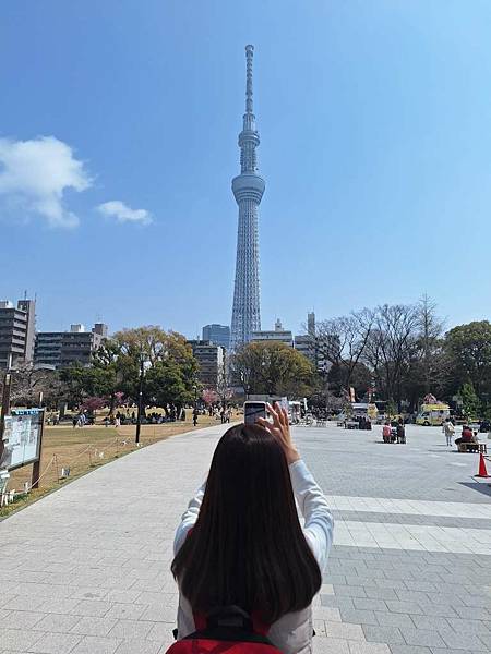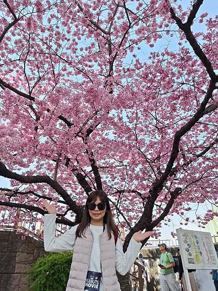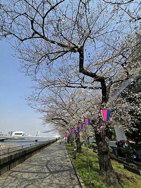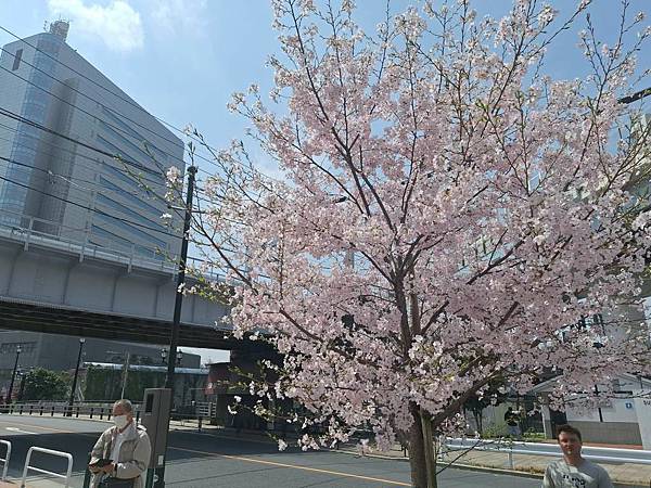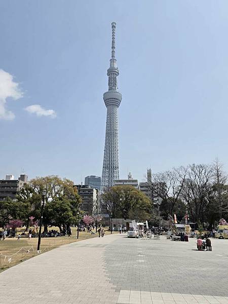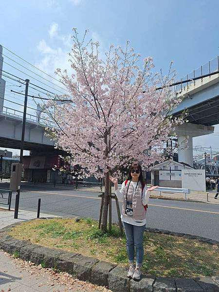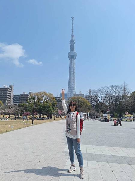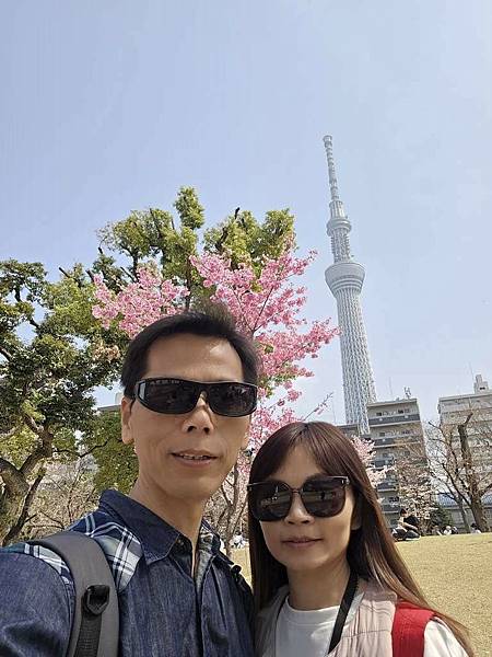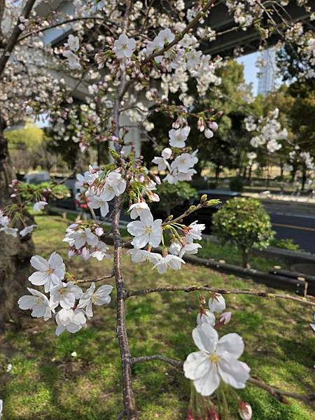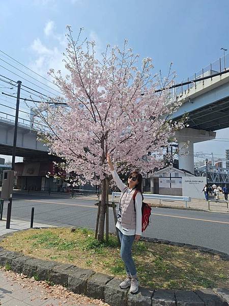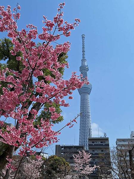 馬路對面就是隅田公園,路邊就有一株美麗的櫻花輝映著晴空塔。