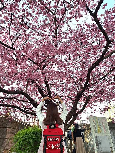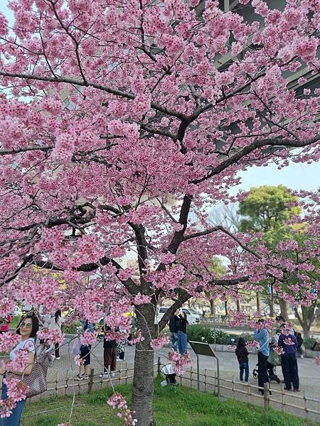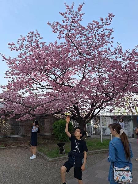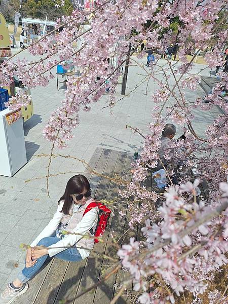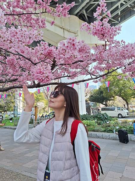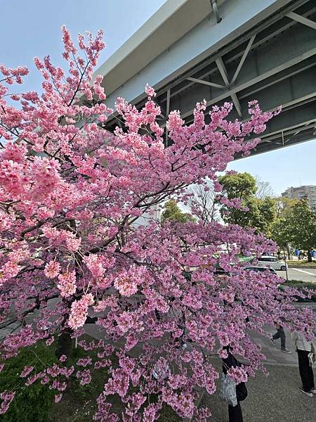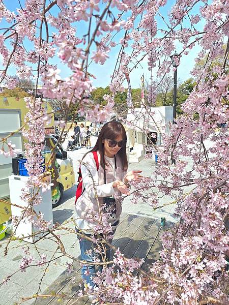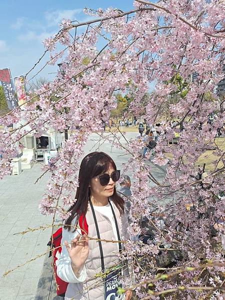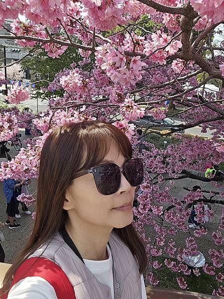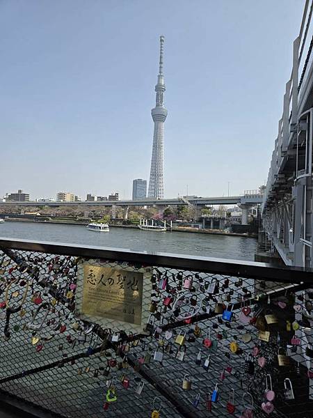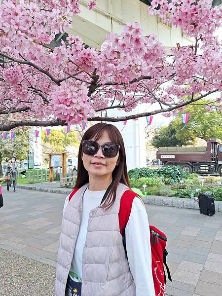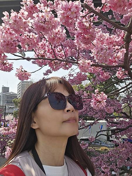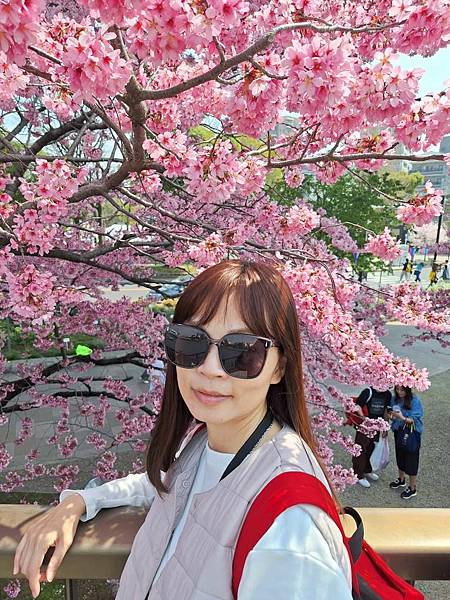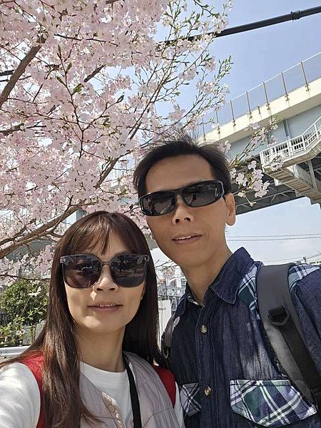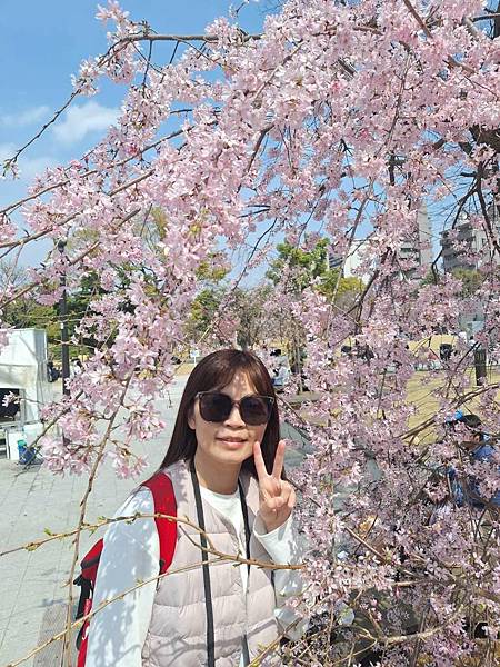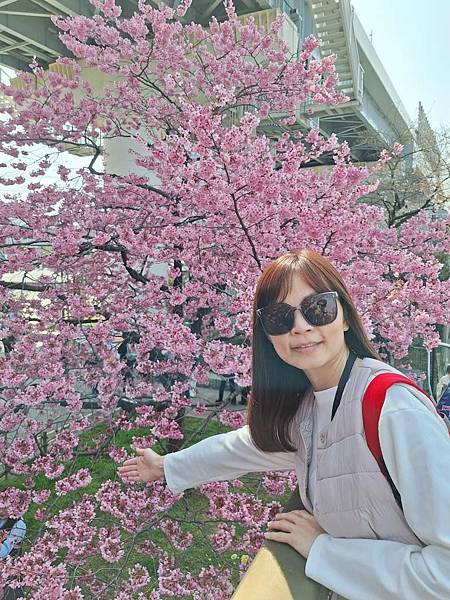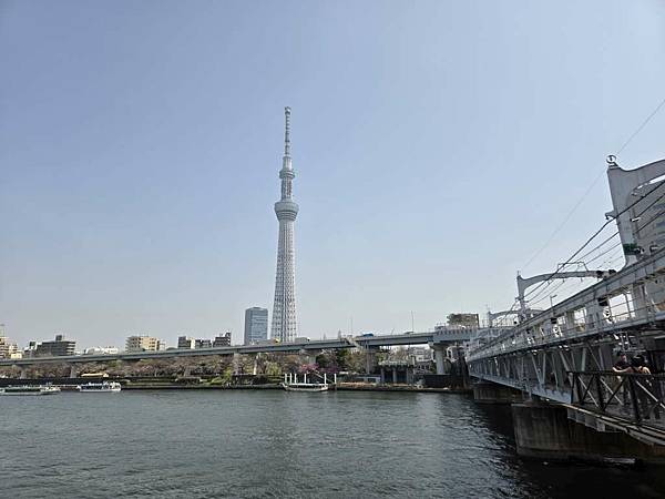 馬路對面就是隅田公園,路邊就有一株美麗的櫻花輝映著晴空塔。