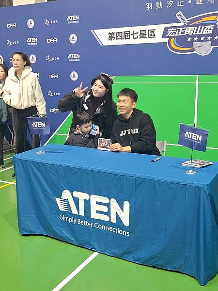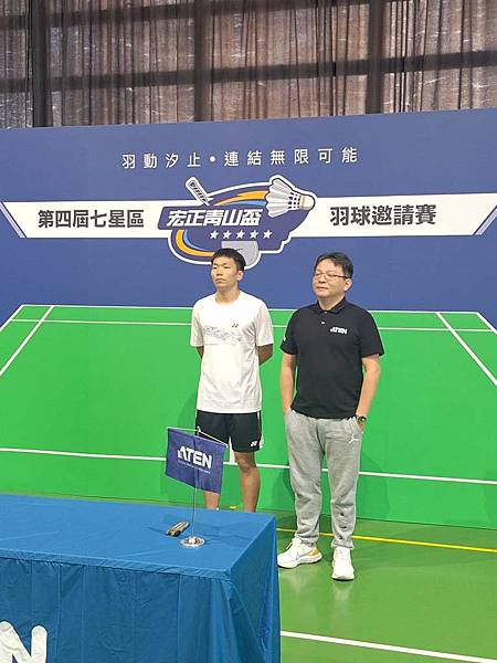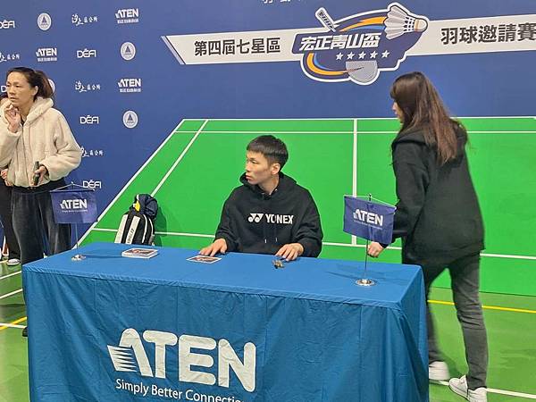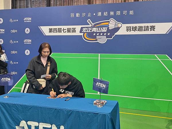 青山國中小學10幾年來都是汐止地區羽球的重點學校,而宏正科技這幾年贊助該校舉辦宏正青山盃,邀請七星區學校參賽,今年已是第4屆(比比參加過第1屆),而且今年特請奧運羽球男雙金牌得主擔任嘉賓,上午10-12時需有入場券才能進去。