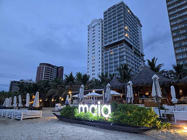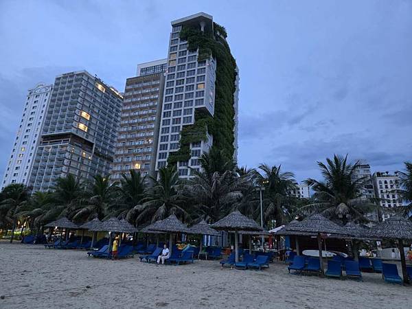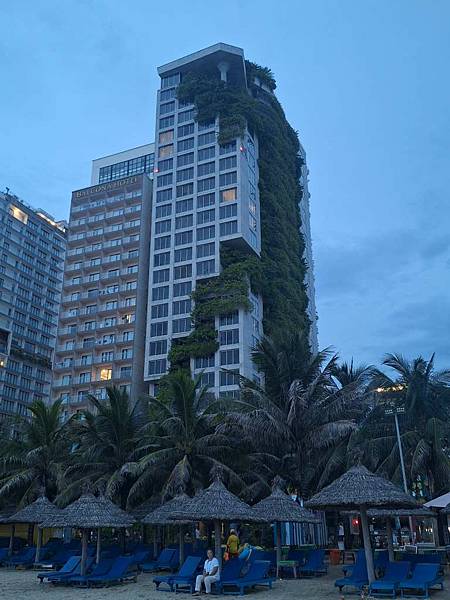 美溪沙灘對面有很多飯店,其中這棟長滿綠色植物建築相當獨特。