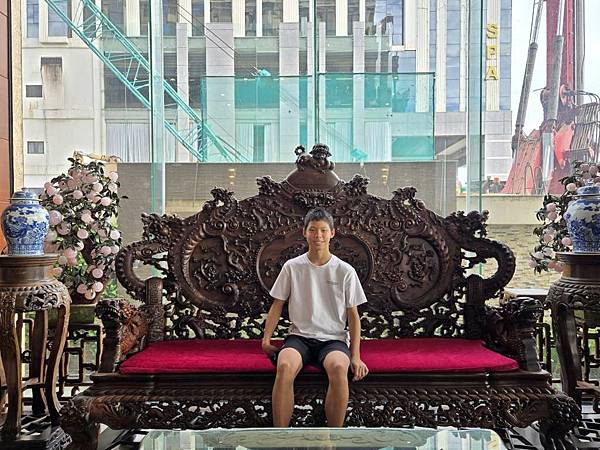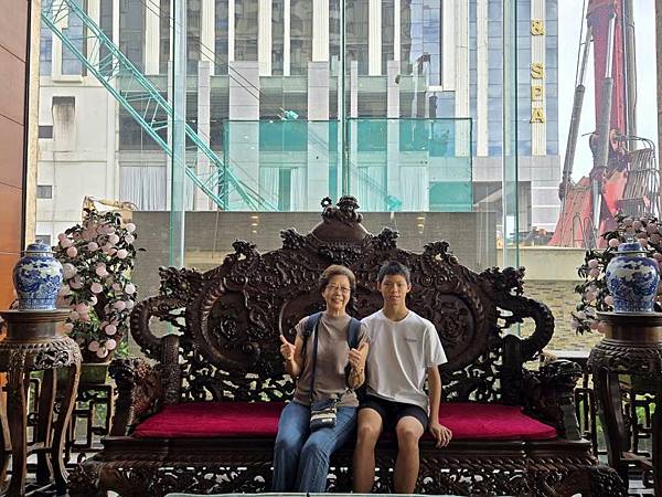 這椅子真的很浮誇,比比跟阿媽坐著一起拍。