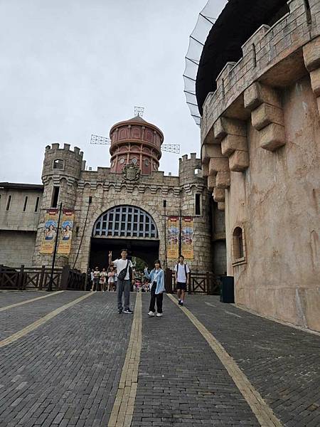 玩了這2個遊戲後,我們想去月亮城堡4D影院,但一直不知如何去,後來才知要從大妹及媽媽身後那棟建築物下層搭小火車過去,但知道時已經下午2點多,已快到集合時間了,所以就沒去。我同事一家有去,但聽他們說4D影片就是一些世界景點,感覺也還好。