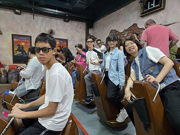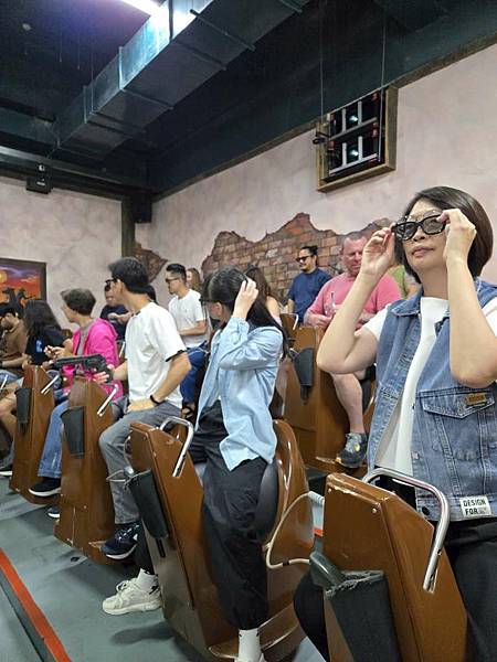 玩完過山車後,我們想去4D影院,剛好搭電梯時有看到同棟下層有4D/5D標示,於是下去排隊。