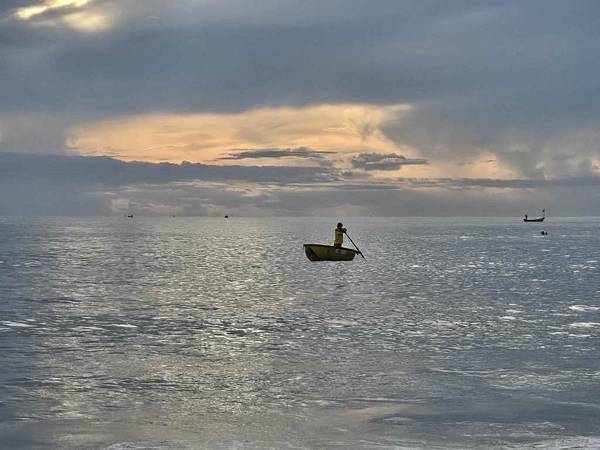 救生員搭竹桶船在海上警戒。